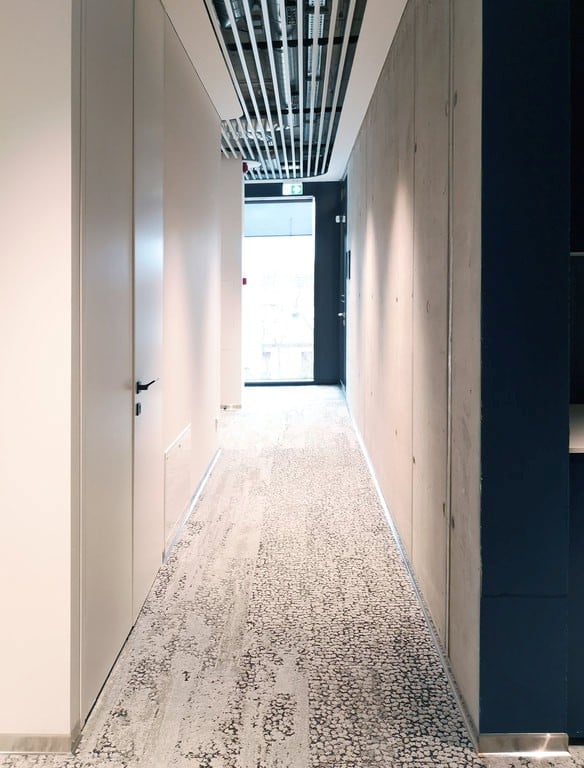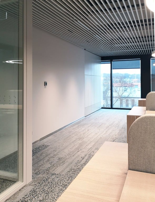 Verslo centre mūsų komanda atliko visapusiškus vidaus apdailos darbus – sumontavome gipskartonio pertvaras, nuglaistėme ir nudažėme sienas, paklojome plyteles. Atlikome betoavimo darbus, dekoratyvinių sienų bei grindų dangų montavimą. Konferencijų salėse įrengtos akustinės sienos, efektyviai sumažinančios triukšmą. Požeminėje automobilių aiktelėje atlikome betonavimo bei sienų šiltinimo ir dažymo darbus, sumontuoti stovėjimo vietų atitvarai. Mūsų tikslas – ne tik atlikti darbus, bet ir sukurti patogią, funkcionalią ir estetišką erdvę, kuri pranoktų užsakovo lūkesčius.