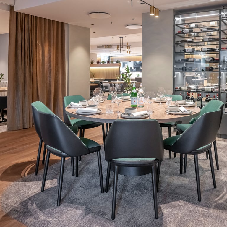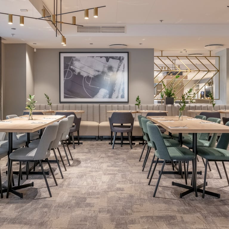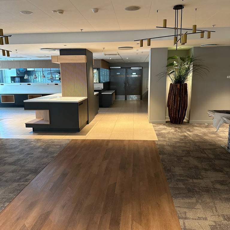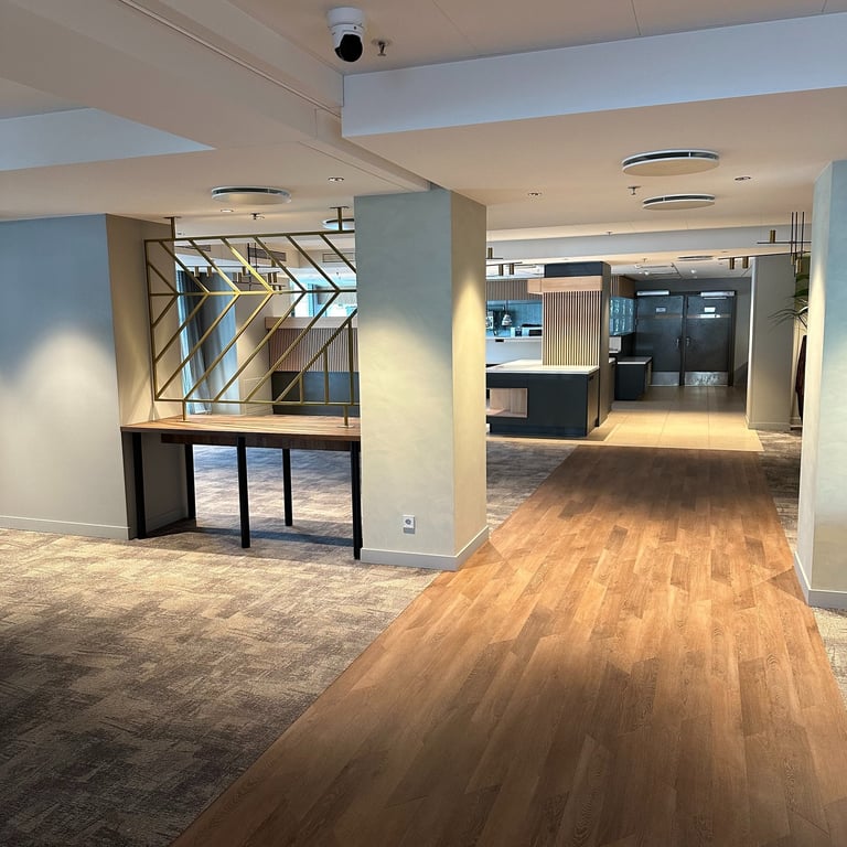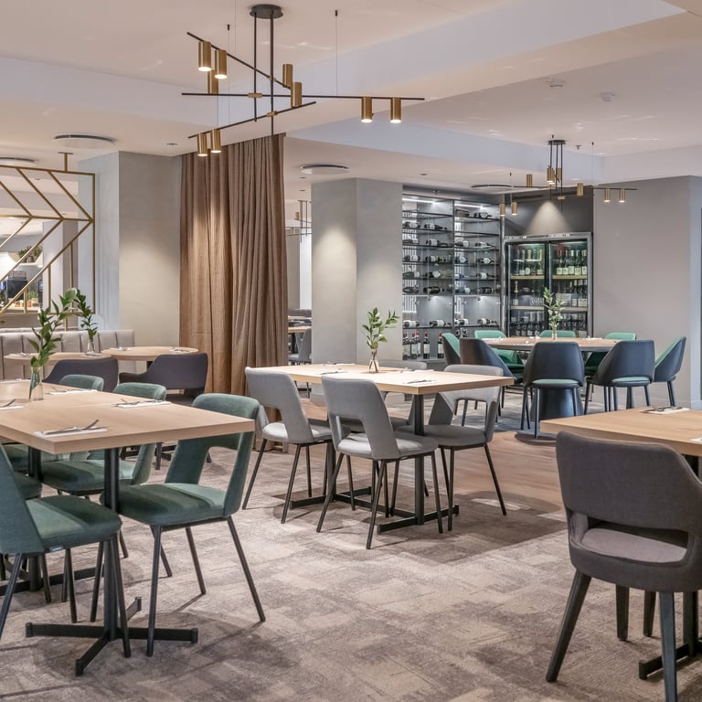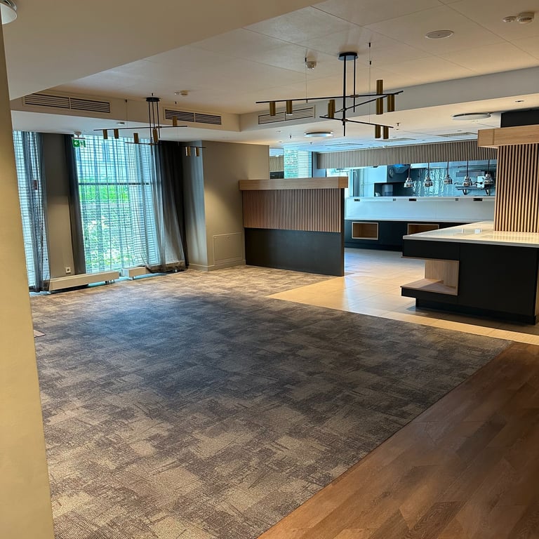 Viešbutyje „Radisson Hotel Kaunas“ atlikome patalpų renovacijos darbus, kurių metu atnaujinome restorano, SPA ir sporto salės erdves. Projektas įgyvendintas glaudžiai bendradarbiaujant su dizaineriais, valdytojais, statybininkais ir baldų montuotojais, todėl pavyko realizuoti modernius sprendimus ir išpildyti kūrybines idėjas. Darbų metu pritaikėme specializuotas dangas, taikėme meninio sienų dažymo technikas, pakeitėme grindų dangas. Tai pat atlikome sienų, lubų glaistymo, dažymo bei plytelių klojimo darbus.